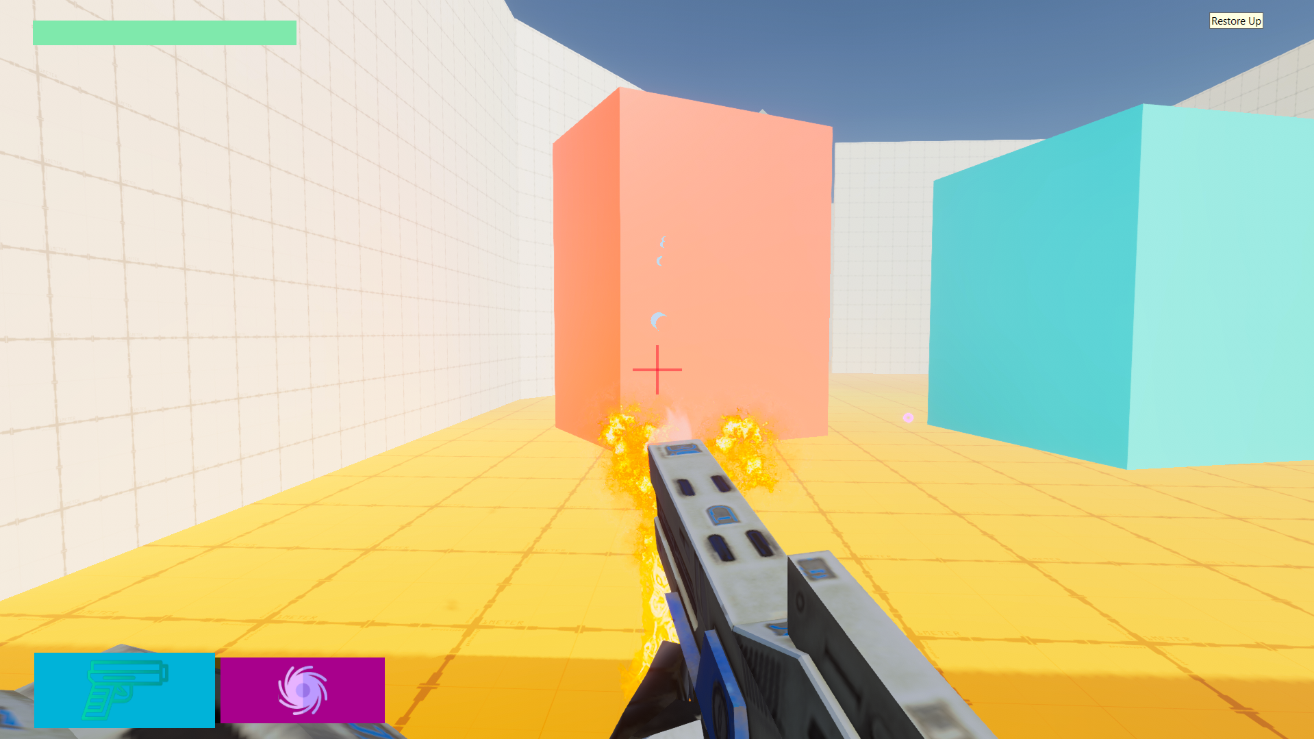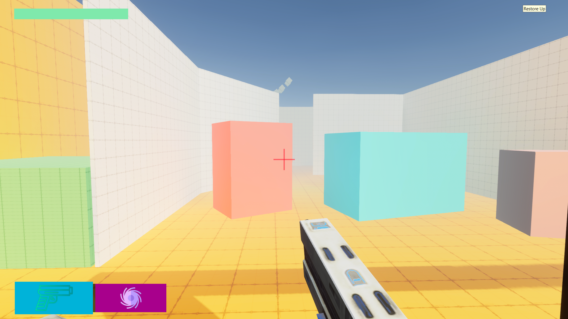 Shoot Out is a FPS shooter in development. It has two types of bullets one is regular and the other is gravity. WASD is for movement, left click for shoot, and space for jumping.